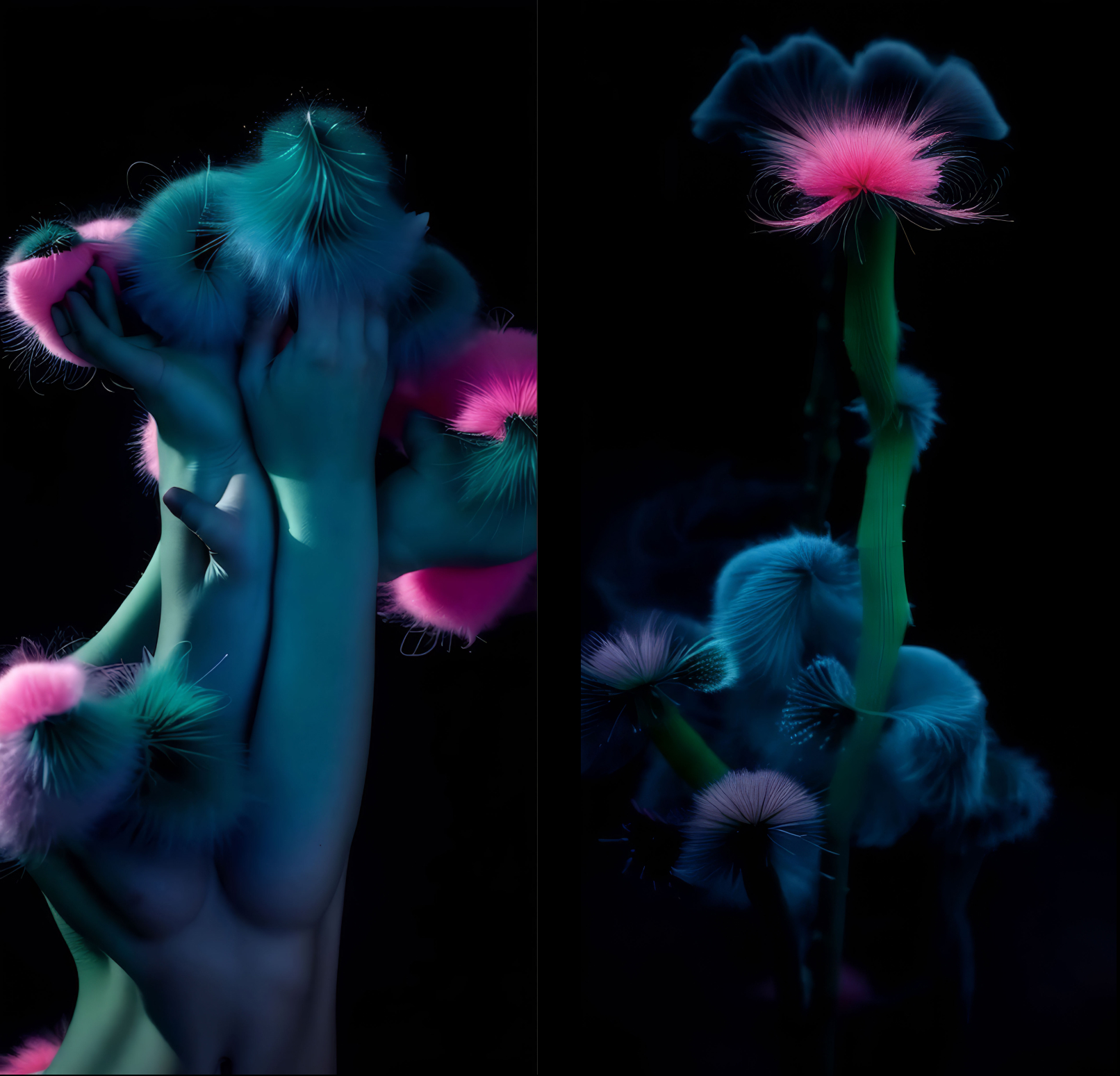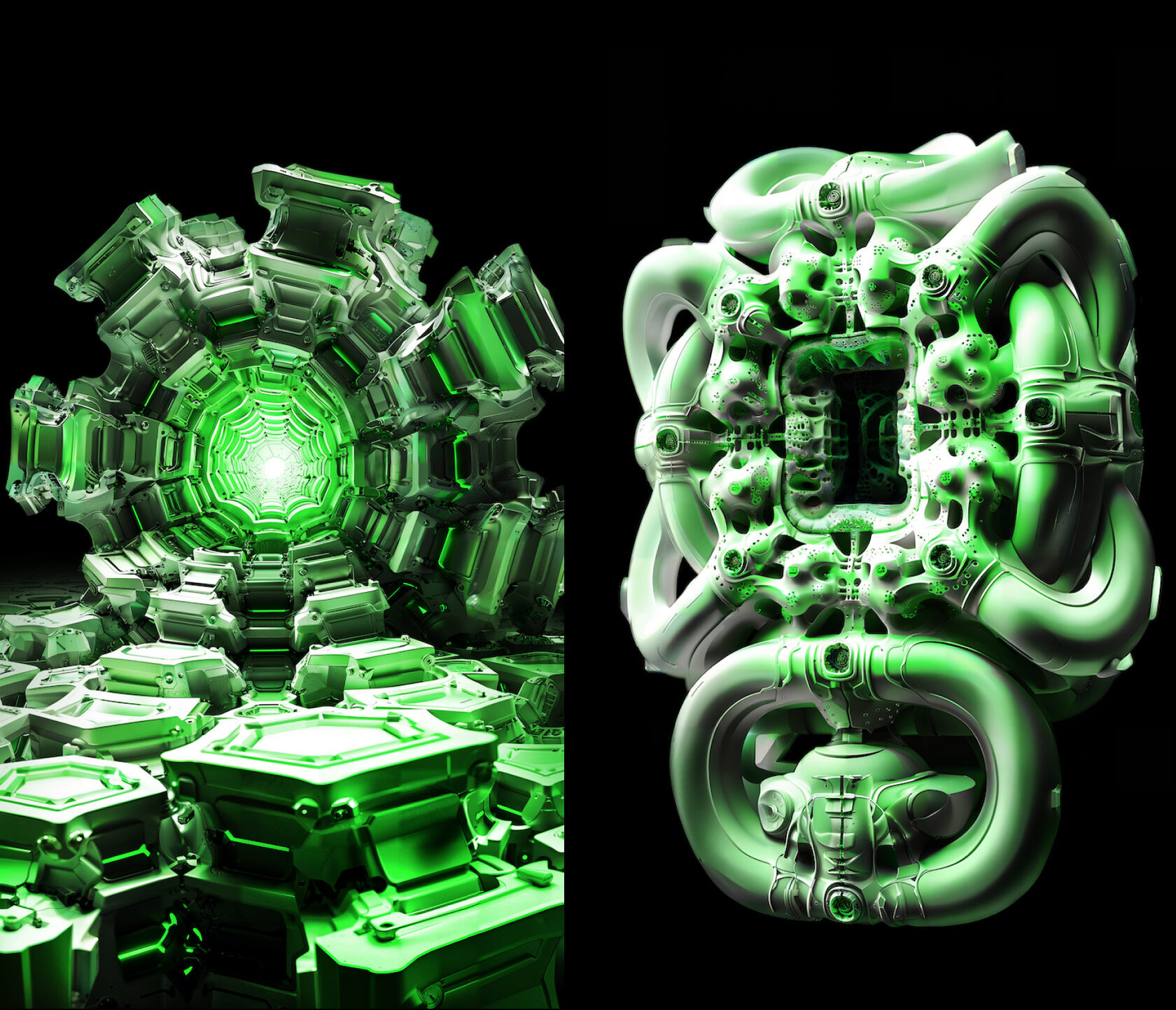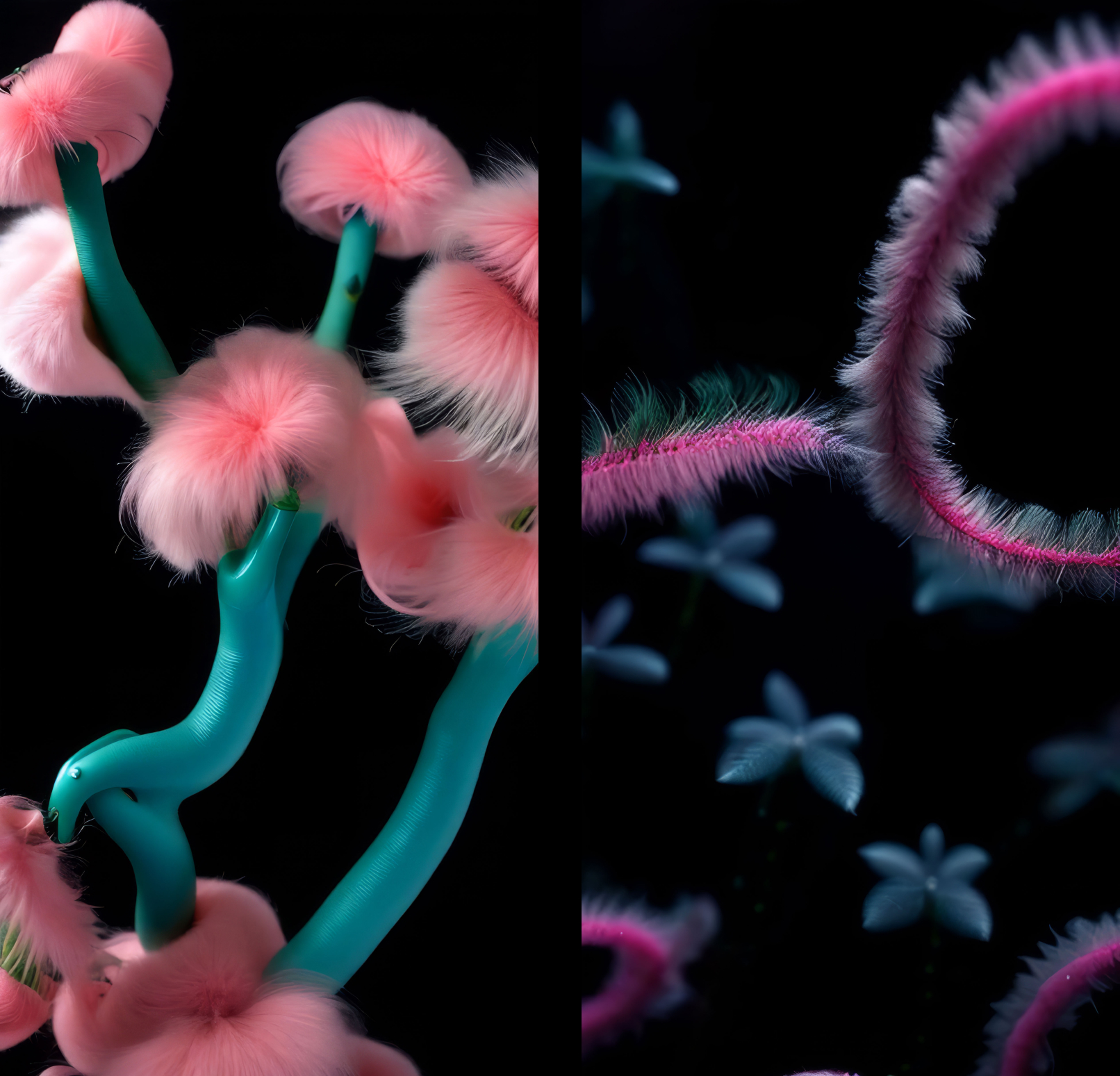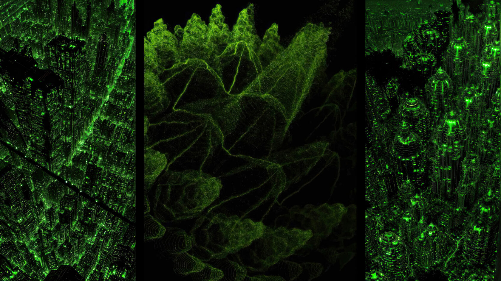 Midjourney помогает на этапе быстрого концептуального дизайна, позволяет создавать детализированные текстуры и стили для цифровых миров и архитектурных элементов. В проекте Biophilic Matrix сеть ускоряет создание «матрицы данных», а в работе New Chapter: Dreams Midjourney обеспечивает художественную основу для дальнейших обработок.